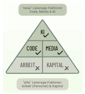 Entspannter arbeiten und erfolgreicher sein – als Solo-X maximal von den „neuen“ Leverage-Faktoren Code, Media & KI profitieren